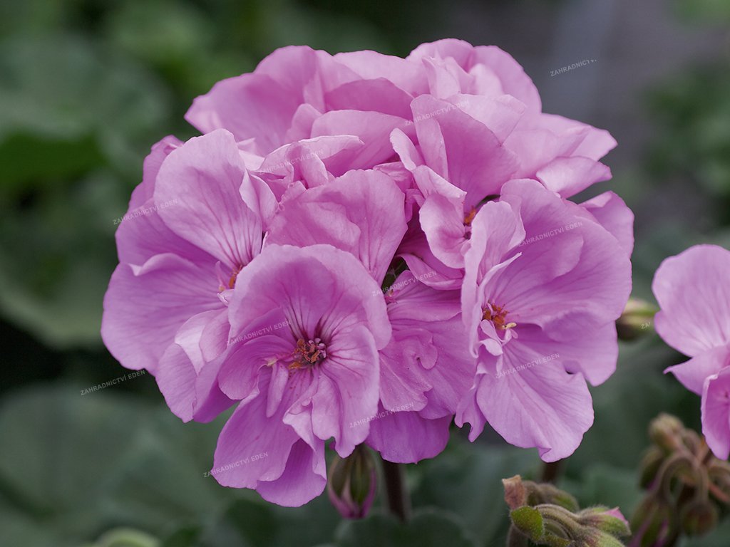 Pelargonie, lidovým názvem muškáty, pochází z Jižní Afriky, odkud se rozšířily na počátku 17. století do Evropy. Lze je rozdělit podle typů květů na jednoduché a plnokvěté, nebo podle vzrůstu na převislé a vzpřímené. Tento rod se těší velké oblibě díky nenáročnému pěstování, bohatému kvetení, širokému spektru barev a velkých možností využití jak v mobilních nádobách, tak ve volné půdě. Plnokvěté odrůdy je lepší vysazovat na chráněná stanoviště. Jednoduché odrůdy se hodí i k výsadbě na záhonyy. Rostliny kvetou od května až do zámrazu. Podle jejich vzrůstnosti se používají k výsadbě okenních truhlíků, nádob, závěsných květináčů, ale i do volné půdy.