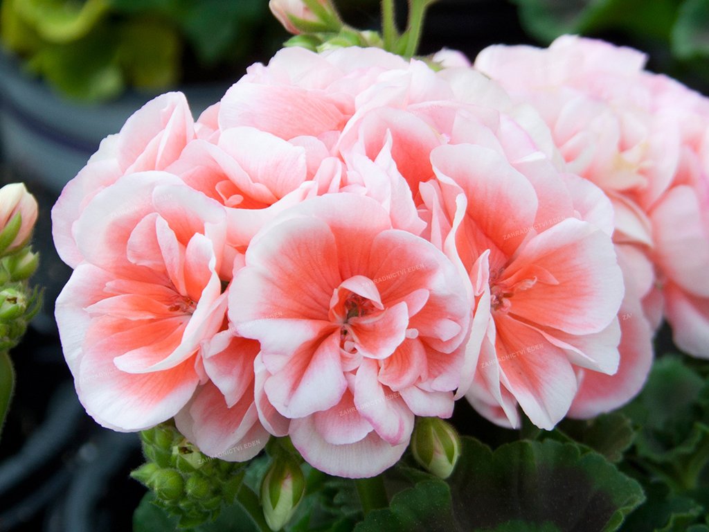 Pelargonie, lidovým názvem muškáty, pochází z Jižní Afriky, odkud se rozšířily na počátku 17. století do Evropy. Lze je rozdělit podle typů květů na jednoduché a plnokvěté, nebo podle vzrůstu na převislé a vzpřímené. Tento rod se těší velké oblibě díky nenáročnému pěstování, bohatému kvetení, širokému spektru barev a velkých možností využití jak v mobilních nádobách, tak ve volné půdě. Plnokvěté odrůdy je lepší vysazovat na chráněná stanoviště. Jednoduché odrůdy se hodí i k výsadbě na záhonyy. Rostliny kvetou od května až do zámrazu. Podle jejich vzrůstnosti se používají k výsadbě okenních truhlíků, nádob, závěsných květináčů, ale i do volné půdy.