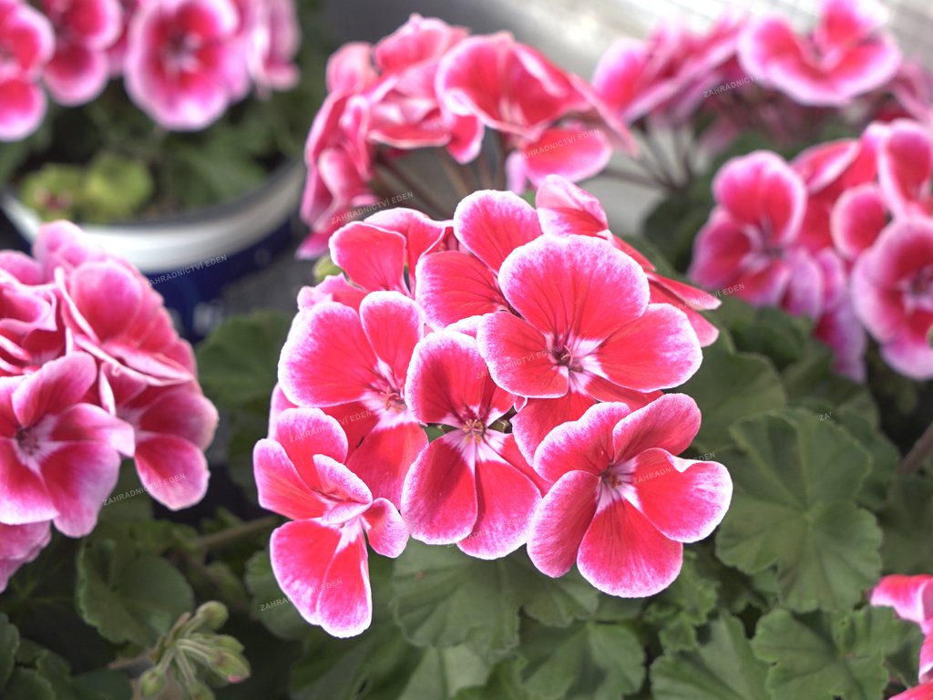 Pelargonie, lidovým názvem muškáty, pochází z Jižní Afriky, odkud se rozšířily na počátku 17. století do Evropy. Lze je rozdělit podle typů květů na jednoduché a plnokvěté, nebo podle vzrůstu na převislé a vzpřímené. Tento rod se těší velké oblibě díky nenáročnému pěstování, bohatému kvetení, širokému spektru barev a velkých možností využití jak v mobilních nádobách, tak ve volné půdě. Plnokvěté odrůdy je lepší vysazovat na chráněná stanoviště. Jednoduché odrůdy se hodí i k výsadbě na záhony. Rostliny kvetou od května až do zámrazu. Podle jejich vzrůstnosti se používají k výsadbě okenních truhlíků, nádob, závěsných květináčů, ale i do volné půdy. Nároky: Pelargonie vyžadují mírnou zálivku a pravidelné dávky živin. POZOR NA PŘELITÍ. Většina odrůd velice dobře snáší slunná stanoviště. Pro jejich pěstování lze použít běžně dostupné substráty určené k pěstování pelargonií nebo je možné namíchat si vlastní zeminu. K tomu lze použít kompostní zeminu s rašelinou v poměru 1:1 nebo směs rašeliny, kompostované kůry a hlinité zeminy. Pěstování: 14 dní po výsadbě se mohou začít rostliny přihnojovat hnojivem s vyrovnaným obsahem živin. Rostliny se zaštipují pouze do konce února, v případě pozdějšího zaštípnutí se oddaluje kvetení o 4 – 6 týdnů. Dávkování hnojiva se nachází v návodu k použití, který je součástí každého balení. Nejvhodnější je přihnojování slabou koncentrací hnojiva během každé zálivky. V průběhu kvetení je nutné odstraňovat odkvetlá květenství.Doplňkové parametry