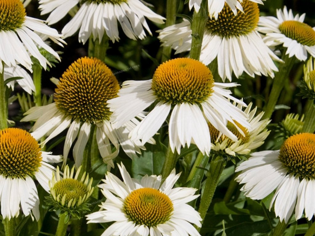Třapatka nachová je bylina pocházející ze Severní Ameriky. Rostlina má vzpřímenou chlupatou lodyhu a řapíkaté, kopinaté, drsně chlupaté listy zelené barvy. Kultivar 'Meditation White' je poměrně nízký, má dobře větvící se výhony a bohatě kvete. Květy vykvétající od července do září mají čistě bílou barvu. Třapatka je poměrně nenáročná rostlina, které vyhovuje slunné stanoviště a dobře propustná, sušší kamenitá půda.Doplňkové parametry