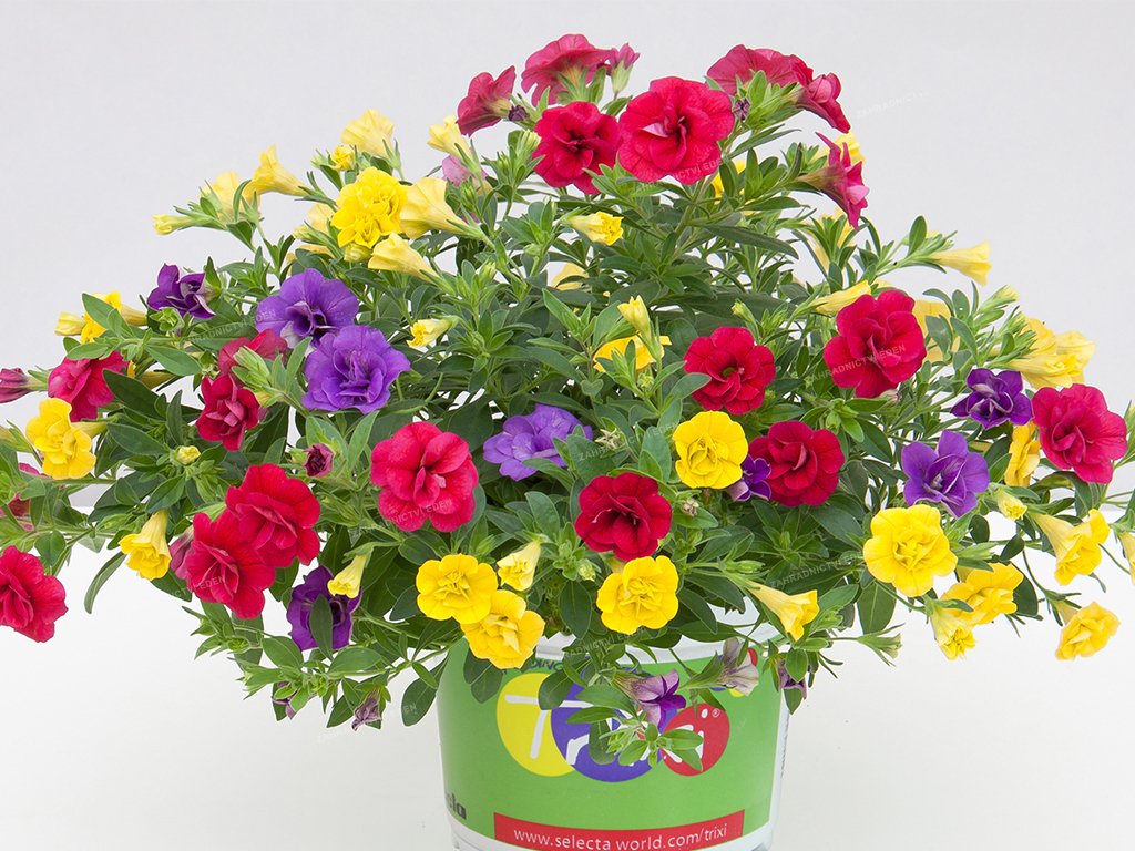 Serie Trixi Petticoat je kombinací z odrůd Calibrachoa MF Double, které se vyznačují dobrými růstovými vlastnostmi, dlouhou dobou kvetení a neuvěřitelným množství plných květů po celou sezónu.